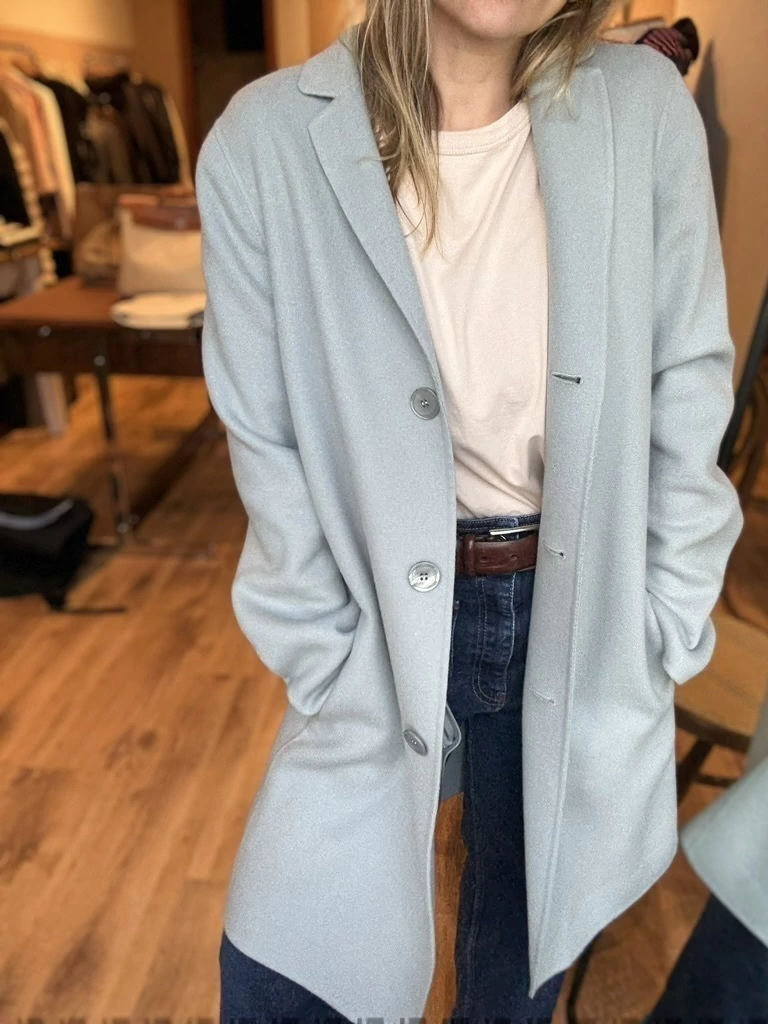 Com modelagem reta, comprimento médio e fechamento frontal por botões, é uma peça versátil que transita bem entre o casual e o formal. Perfeito para sobrepor a looks de inverno com leveza e elegância.