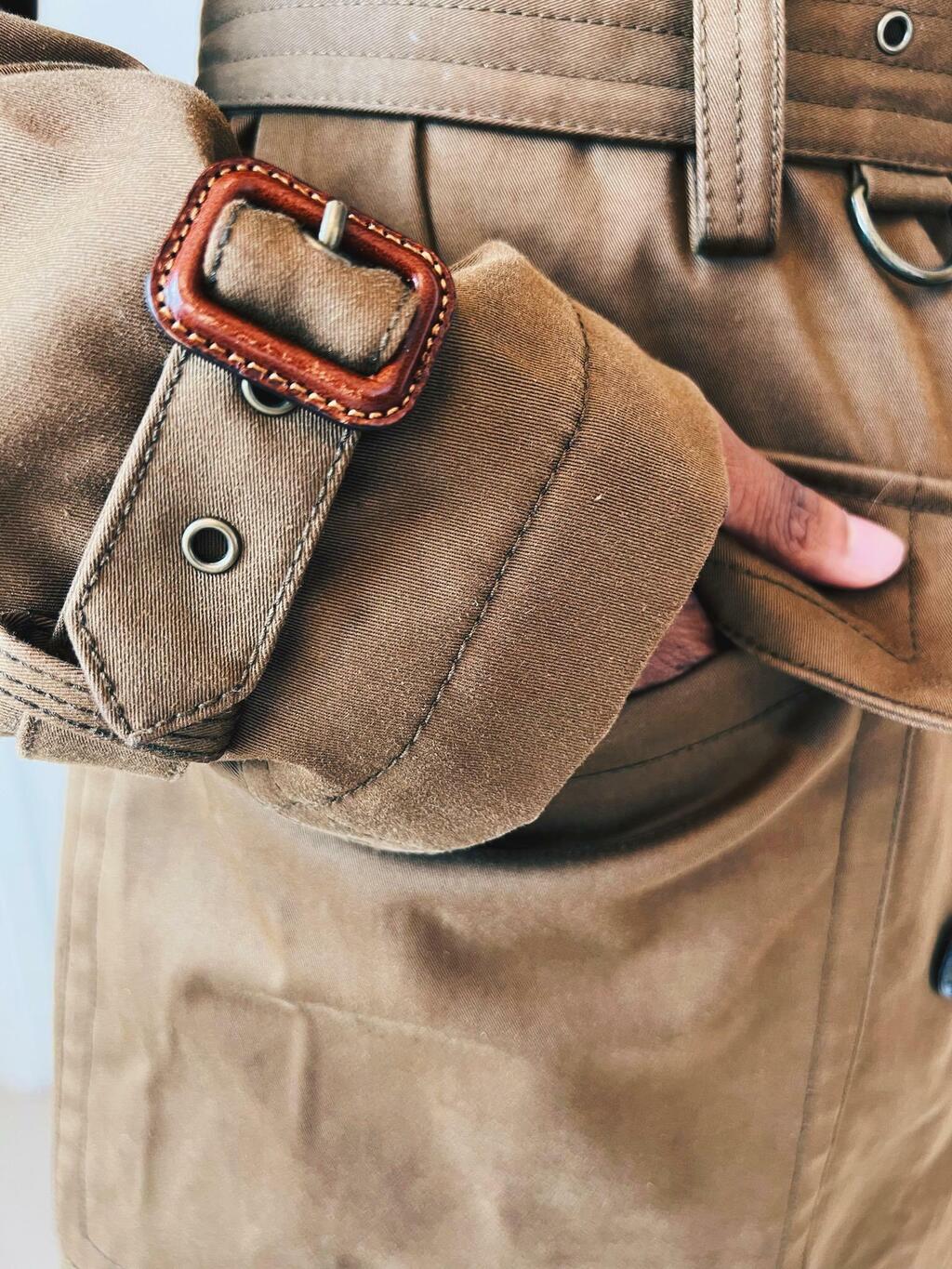 O Trench Coat Burberry Caramelo, uma peça icônica que combina elegância e funcionalidade. Este trench coat é confeccionado em um tecido de algodão de alta qualidade, perfeito para os dias mais frios. Os detalhes de fivelas no punho e na gola de pelo de carneiro, acrescentam um toque moderno e sofisticado, garantindo um ajuste personalizado e um estilo contemporâneo.